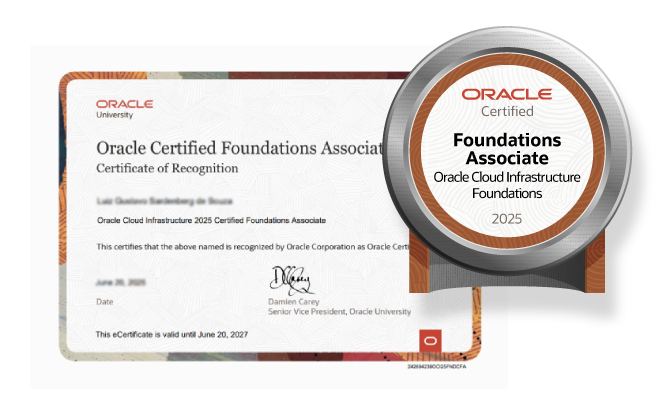 Certificação que comprova domínio dos fundamentos de SQL aplicados ao Oracle Database.